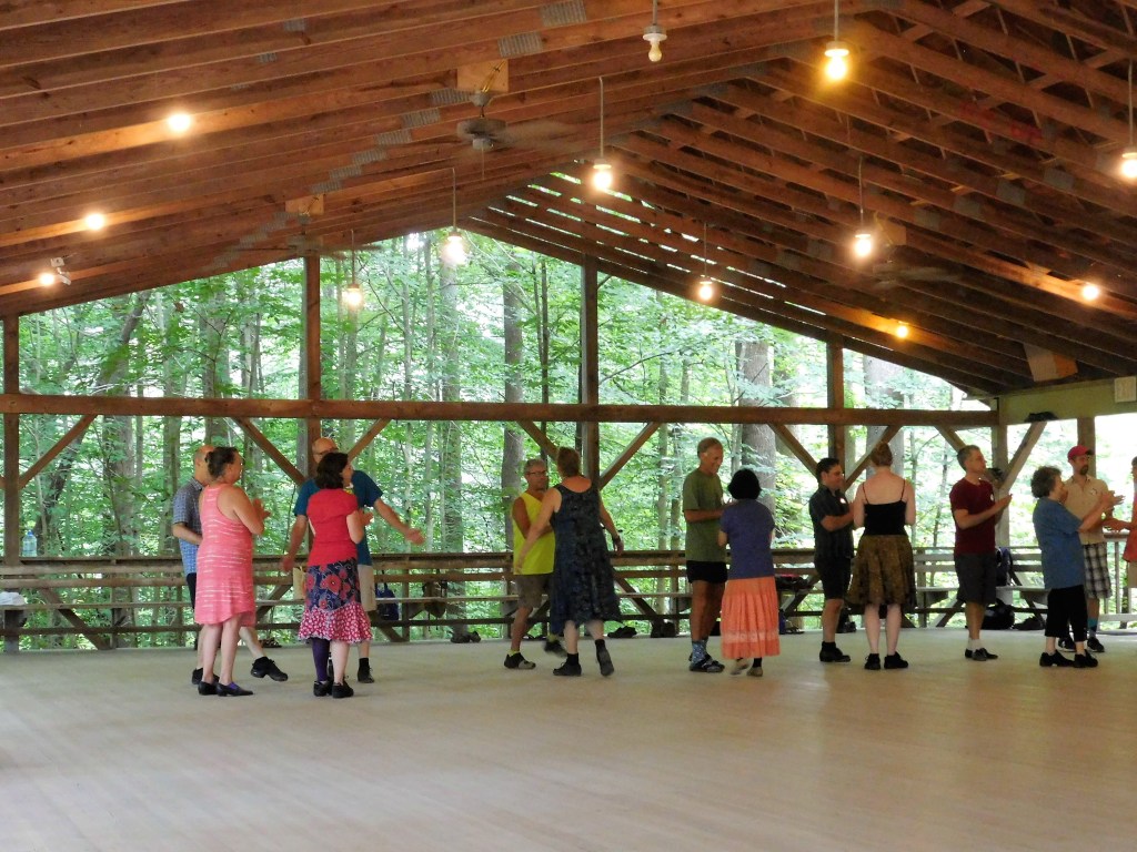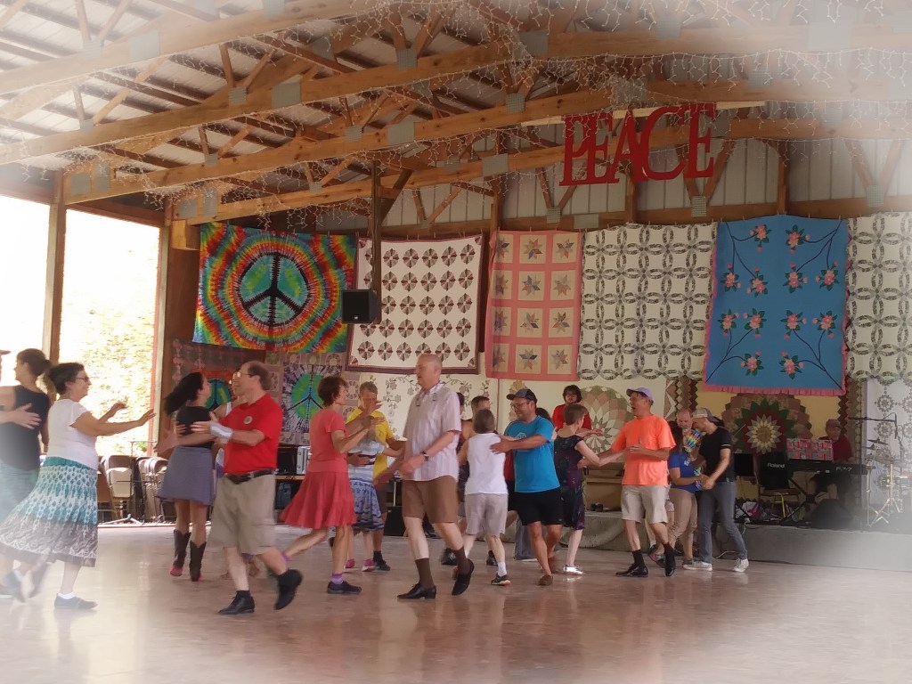 The dance week is Summer ContraDancers Delight Holiday (or Summer CDH). Scott and Ann saved me a spot right next to them so we could share some of the chores. Scott has built out his truck into a camper with a full size bed in the back. He is the epic boy scout and carries plenty of gear. Plus since he built my electric system I figured he could help me learn how to use it (one of the reasons I simply HAD to make this dance week). The dance camp is on private property and has a 150 beds, a Barn/Dance hall with open sides and big industrial fans, cabins with upwards of 150 beds, picnic pavilions, a communal bathroom with showers, a large communal kitchen area, places to set up campers and lots of open land. Not much in the way of cell phone reception especially with T-Mobile so I was pretty much unplugged all week.